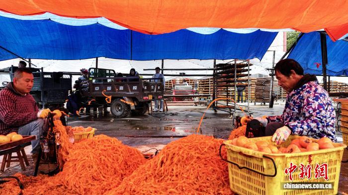 图为公众正在翻晒来皮柿子。杨宗衰 摄